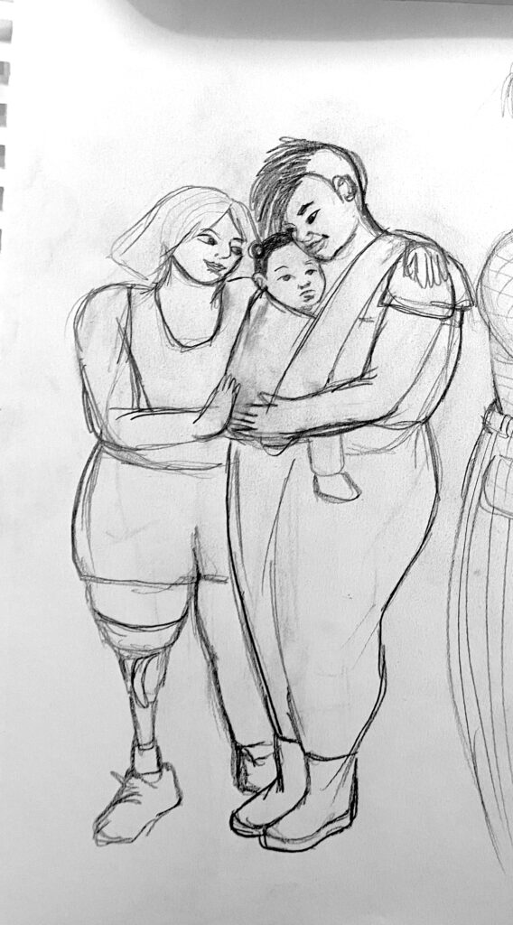 Je crée vos portraits de familles choisies, familles, couples, équipes de sport, de puzzle, de crochet, etc… Vos groupes de musique, vos collègues, vos animaux et tous les êtres que vous aimez.